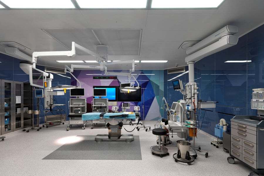 Operating rooms are highly equipped areas with electricity, video and data lines, medical gases, and sometimes also special ventilation