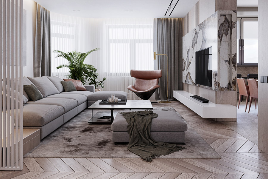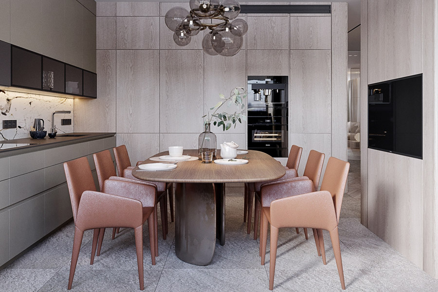 Modern home design employs a sense of simplicity in every element, including furniture. sleek lines and warm colors, there is no clutter or unnecessary accessories involved, Mix of remarkable materials to insure easy functionality for every day use. Open space concept with gold trims on marble floors adding the luxury touch.