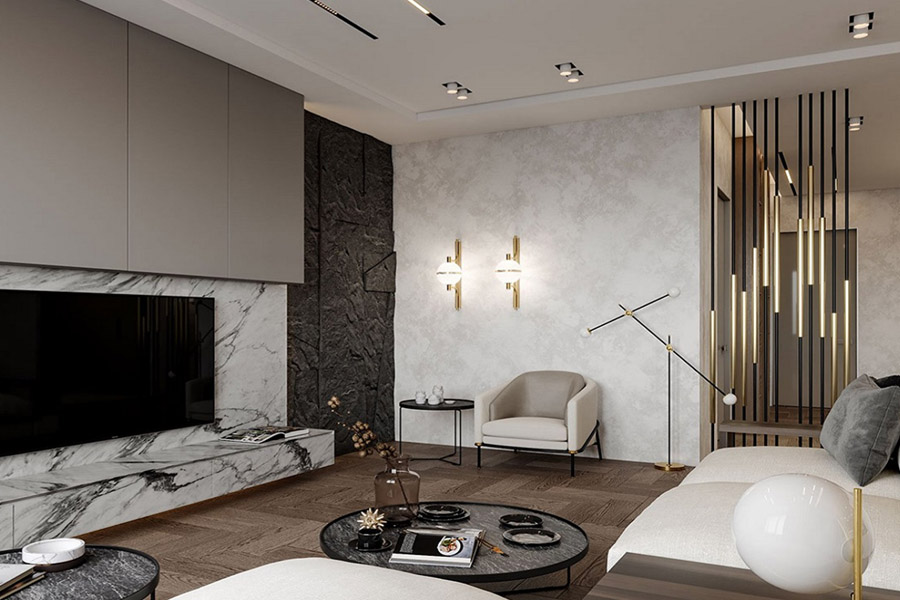 Modern home design employs a sense of simplicity in every element, including furniture. sleek lines and warm colors, there is no clutter or unnecessary accessories involved, Mix of remarkable materials to insure easy functionality for every day use. Open space concept with gold trims on marble floors adding the luxury touch.